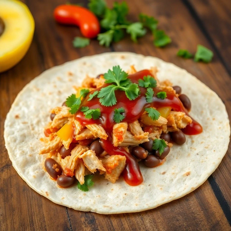 Tortilla de Huevo con Frijoles, Pollo Deshebrado y Salsa BBQ Crujiente
