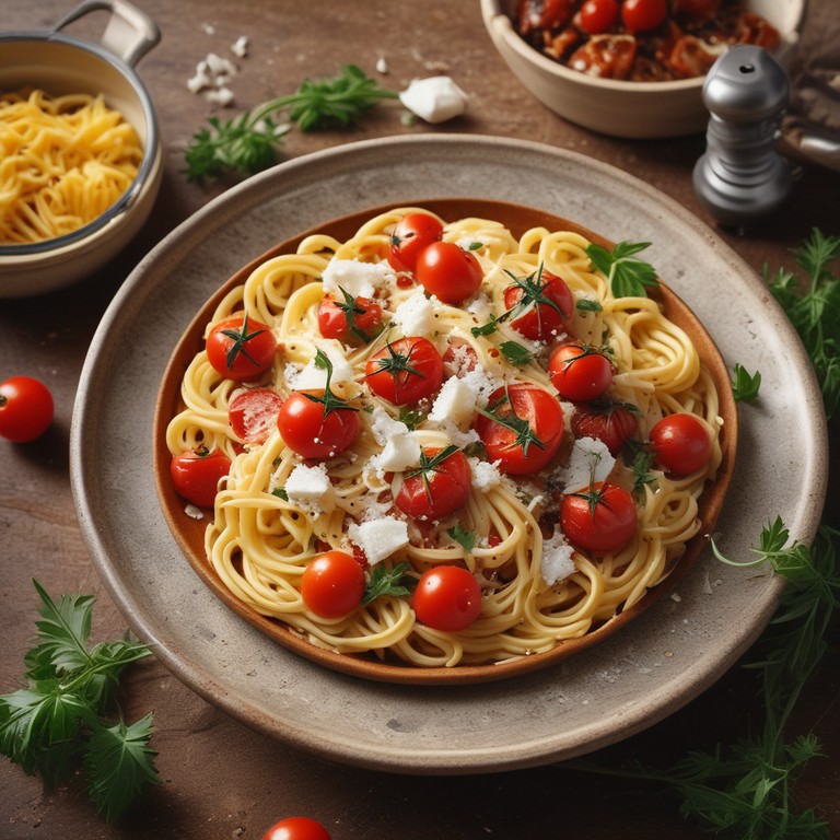 Pasta con Tomates Cherry Confitados y Queso Fresco