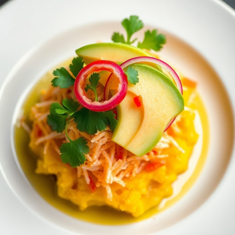 Causa de Batata con Tartar de Bagre, Aguacate y Limón