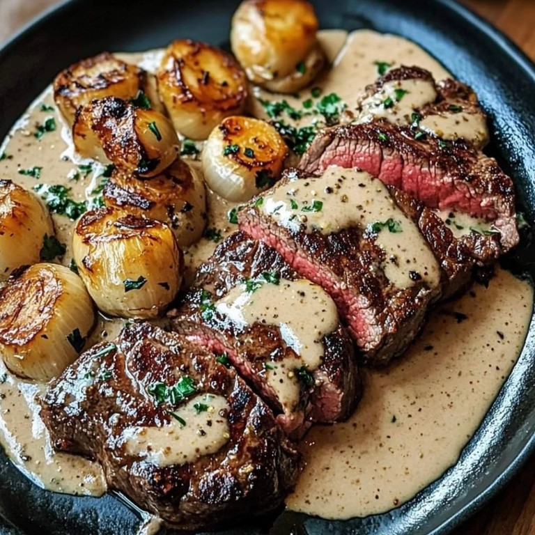Bistec con salsa cremosa de ajo y bourbon