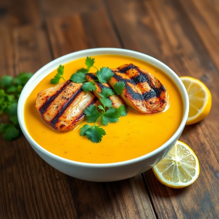 Sopa de Zapallo Amarillo con Pollo a la Parrilla