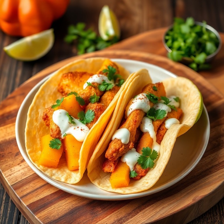 Tacos de Zapallo Amarillo y Pollo en Salsa de Yogur