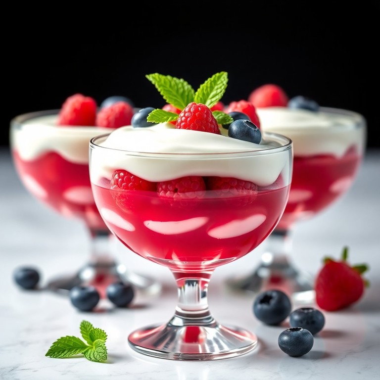 Gelatina de Frutos Rojos con Mousse Cremosa de Yogur
