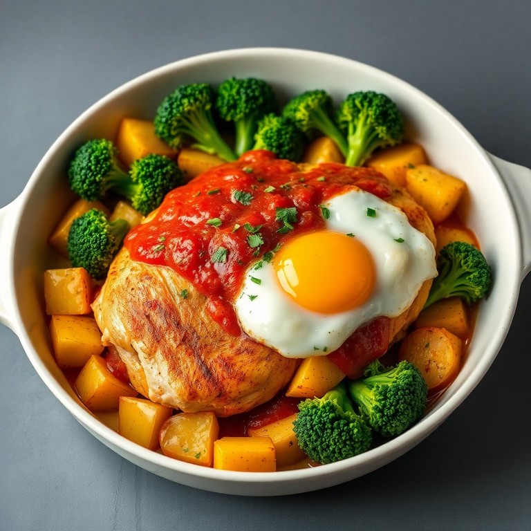 Pollo al Horno con Papas y Brócoli en Salsa de Tomate