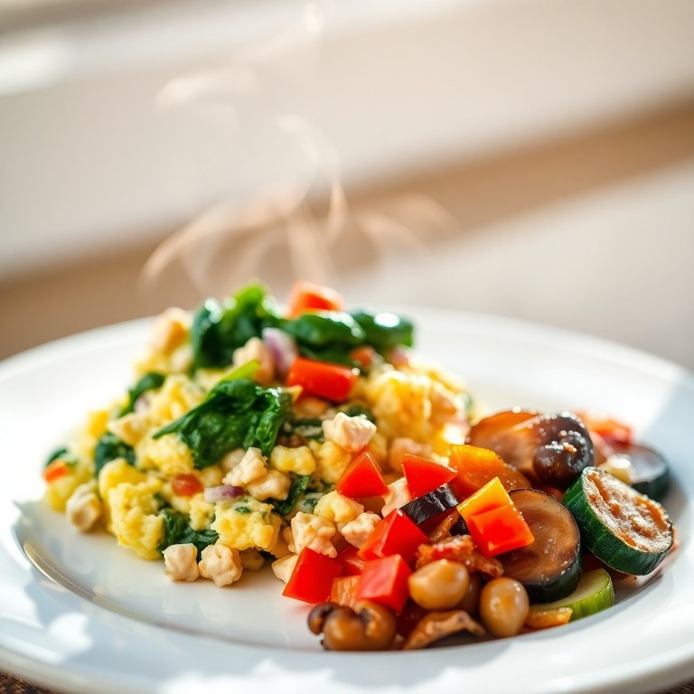 Revuelto de Claras con Pavo y Verduras Salteadas