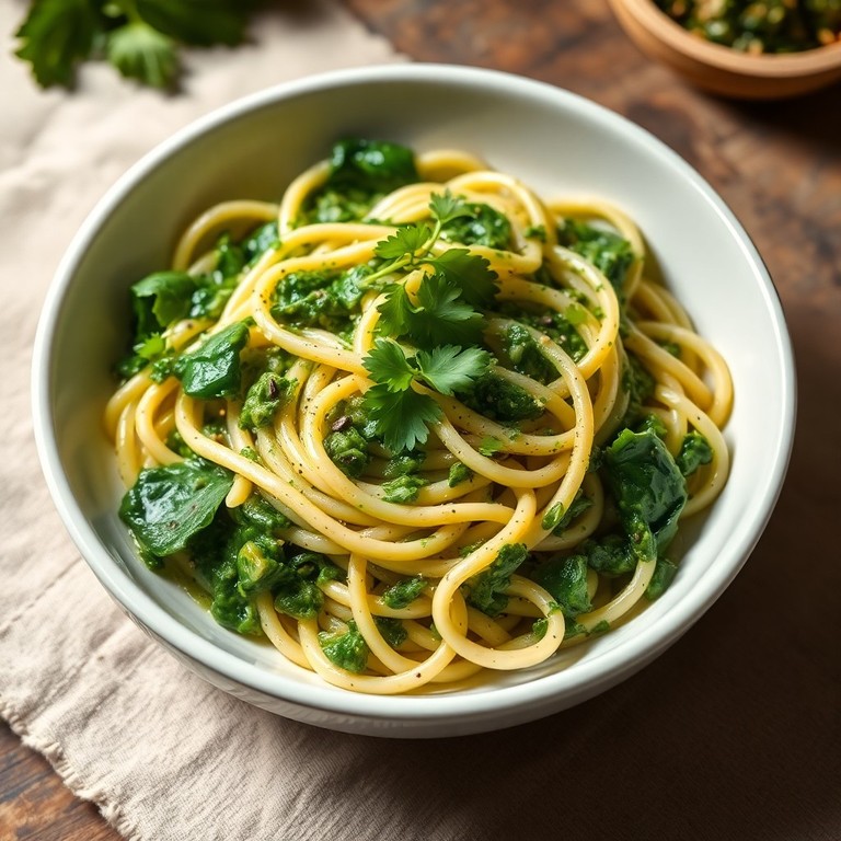 Fideos Cremosos con Espinacas y Hierbas Frescas