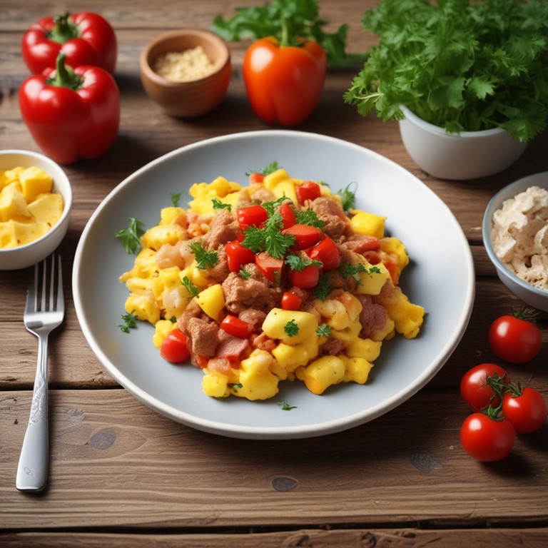 Huevos Revueltos con Carne y Verduras