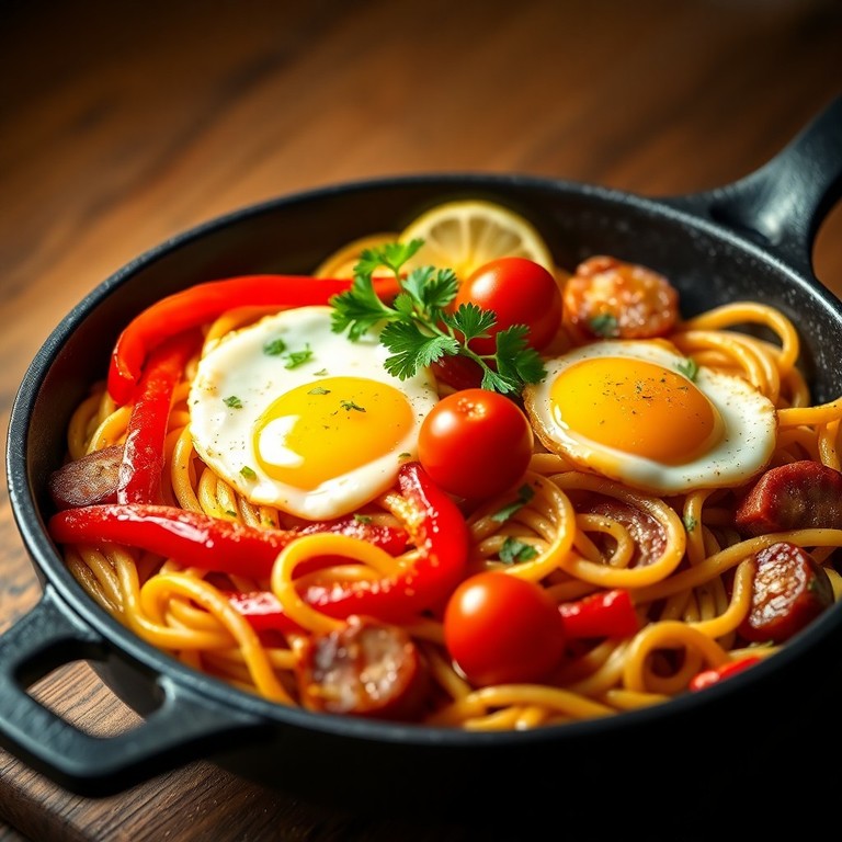 Revuelto Rústico de Fideos, Morrón y Salchicha