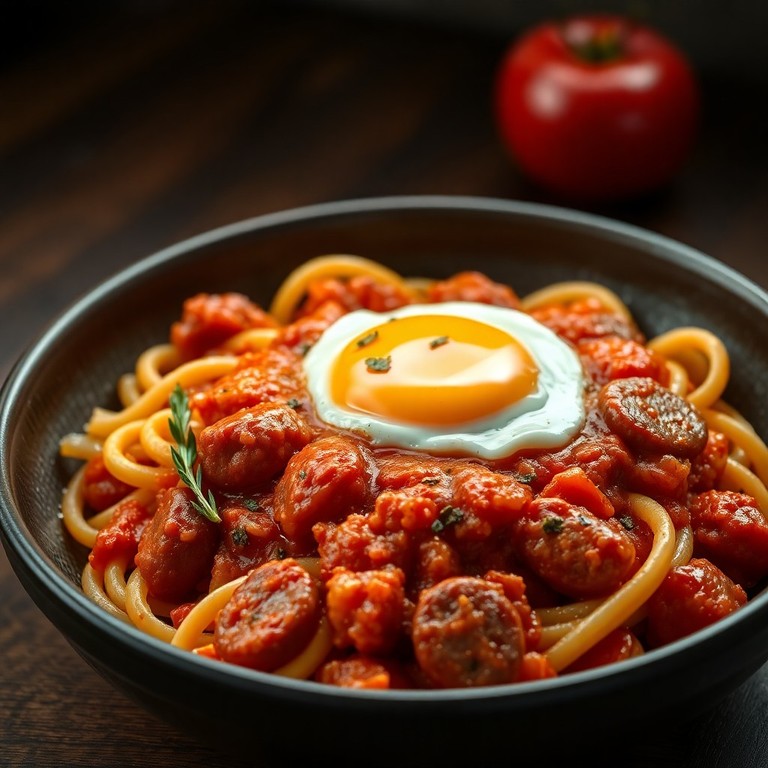 Fideos Rústicos con Salsa de Tomate Cherry y Salchicha