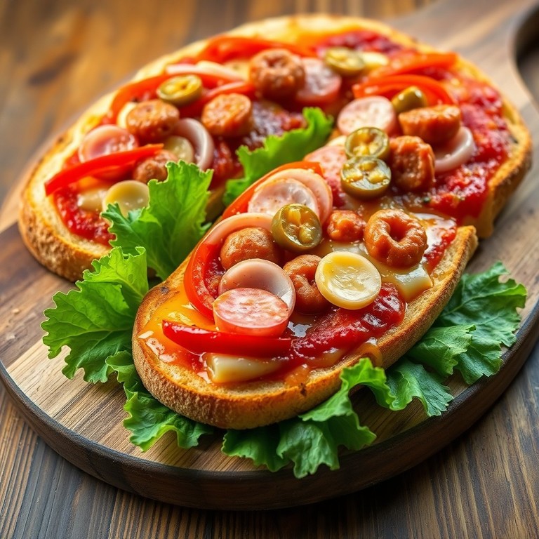 Pizza rápida de pan con toppings variados