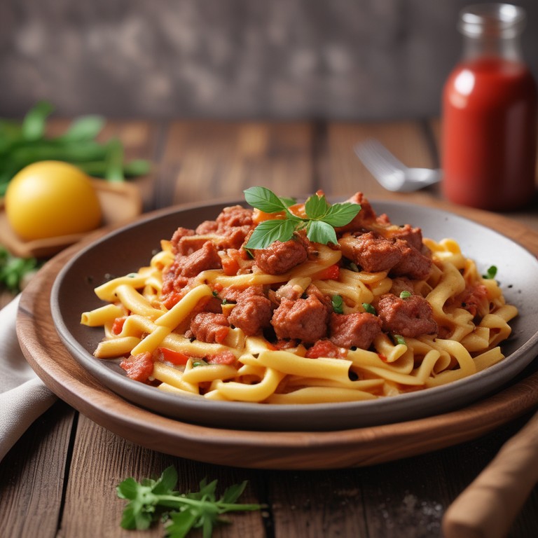 Macarrão Cremoso com Carne Moída e Molho de Tomate