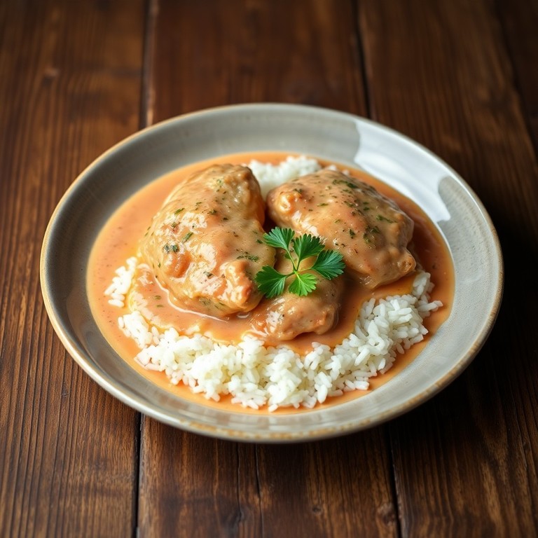 Coxa de Frango Cremosa ao Molho Rosé com Arroz