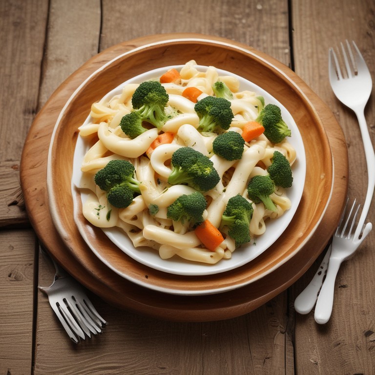 Pasta Cremosa con Queso Mozzarella, Brócoli y Zanahoria