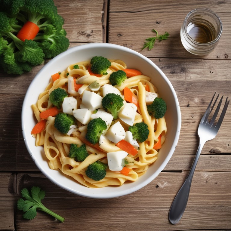Pasta Cremosa con Queso Mozzarella, Brócoli y Zanahorias