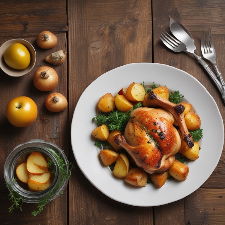 Pollo Asado con Papas y Manzanas Caramelizadas