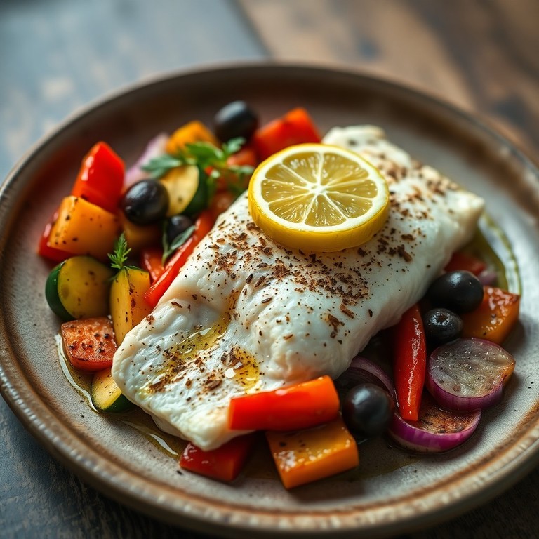 Pescado al Horno con Limón y Vegetales Mediterráneos