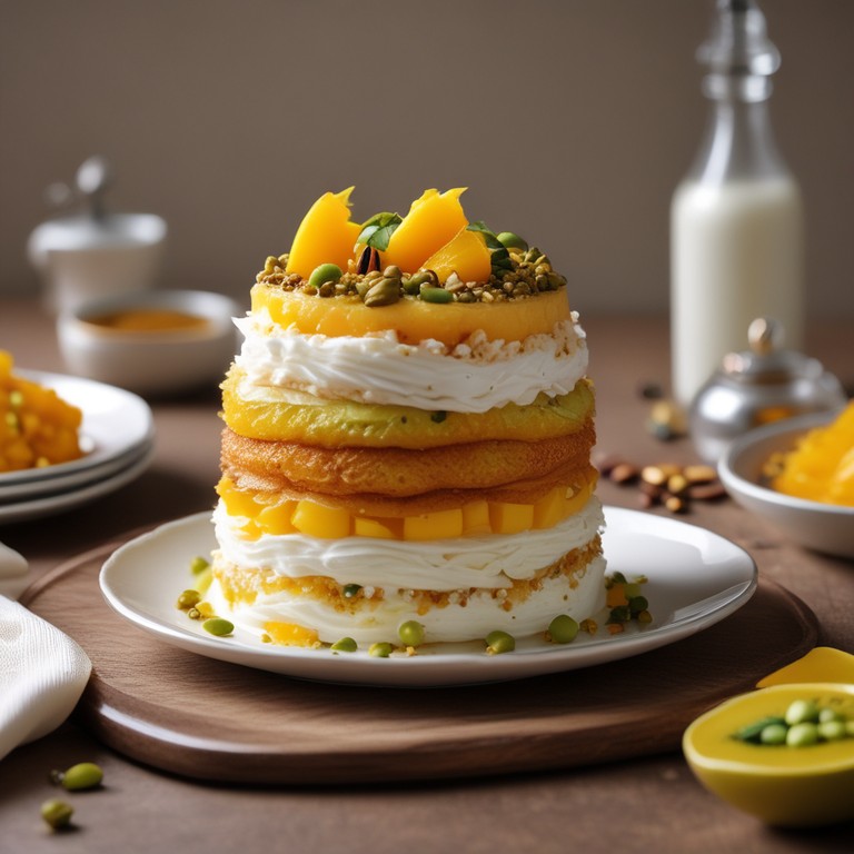 Mango Kunafa with Creamy Mhalabia and Whipped Cream