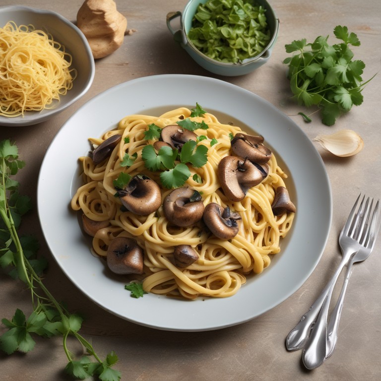 Pasta de Champiñones con Salsa de Ajo y Cilantro