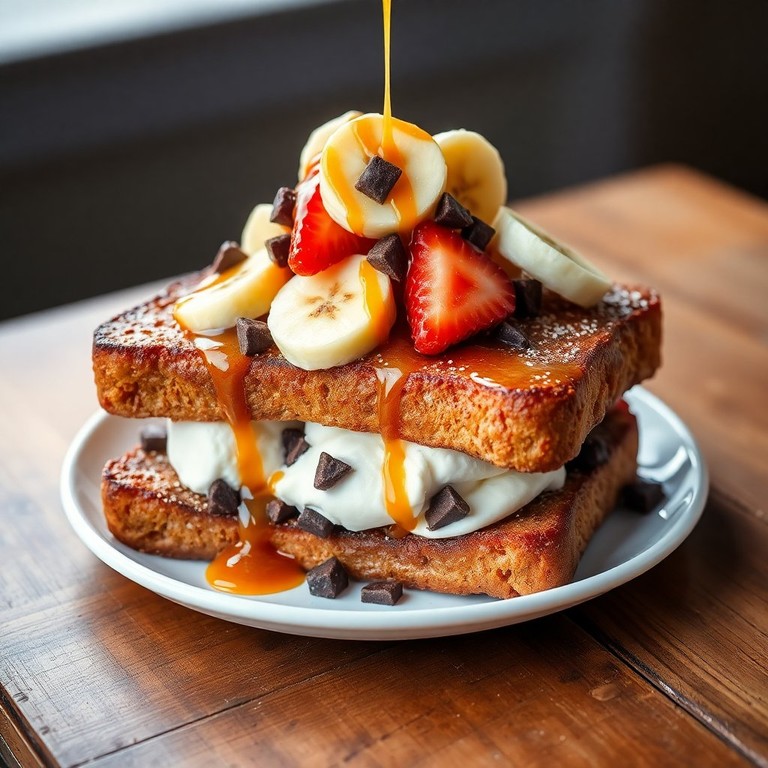 Sándwich de Pan Francés con Helado de Vainilla y Caramelo
