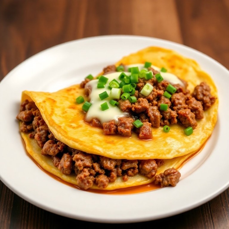 Omelete de Tapioca com Recheio de Carne e Mussarela