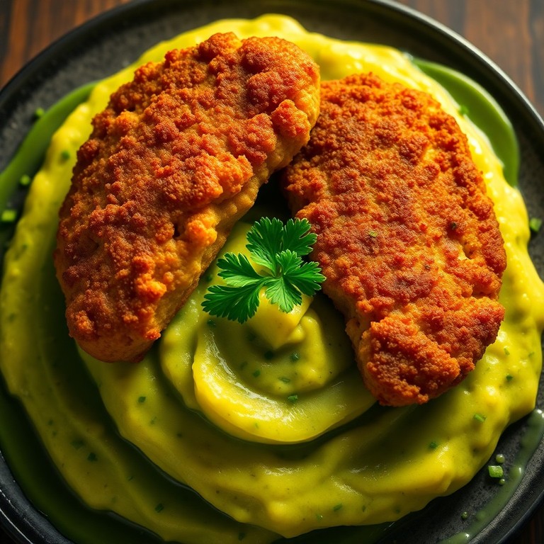 Milanesa de Bistec con Puré Cremoso de Papa y Pimiento Verde