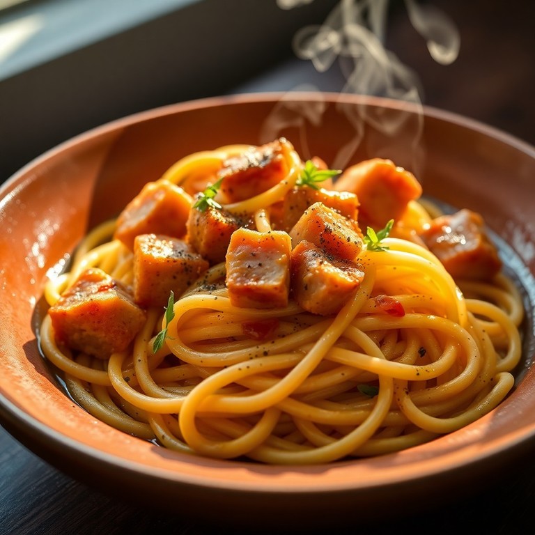 Espagueti a la Carbonara Picante con Chuleta Crujiente