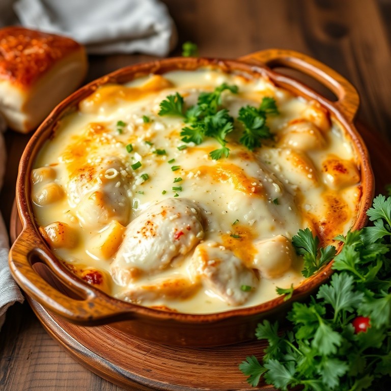 Gratinado Cremoso de Frango com Batatas ao Leite