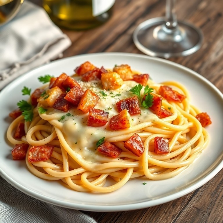 Espaguetis Cremosos con Queso y Bacon al Estilo Casero (2)