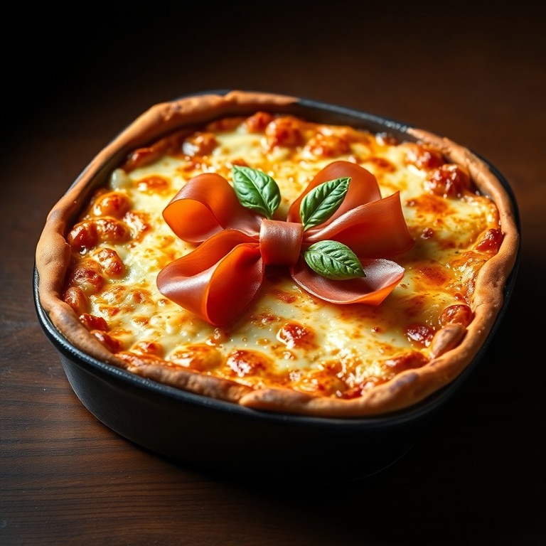 Pizza Cuadrada "Manto de Queso" con Lazo de Jamón