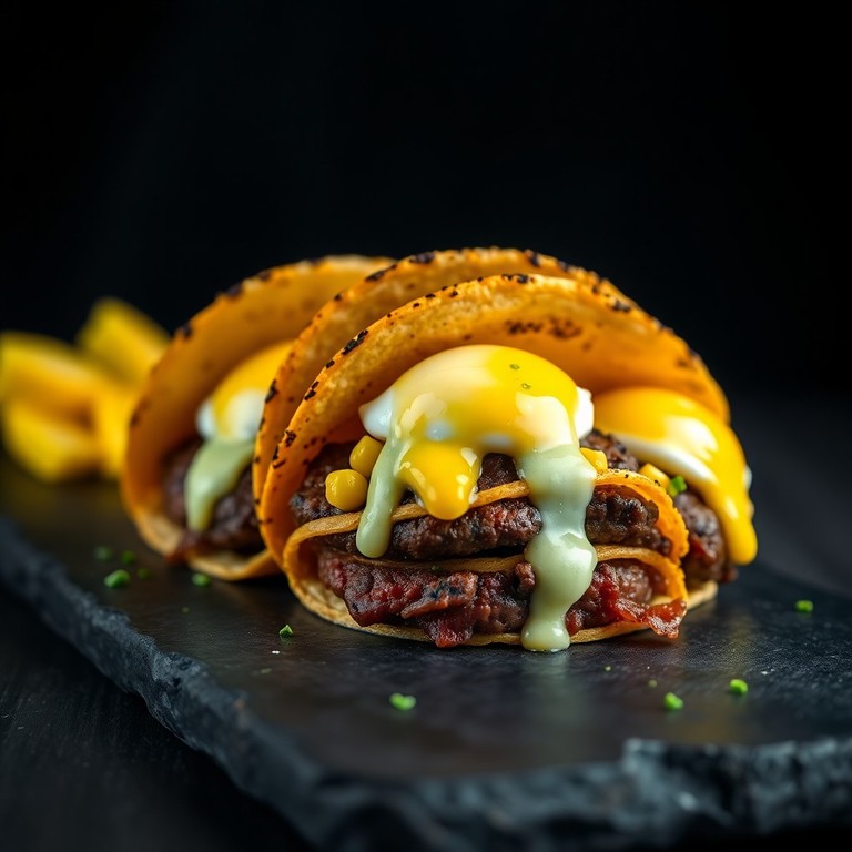 Tacos de Hamburguesa y Huevo con Salsa de Orégano