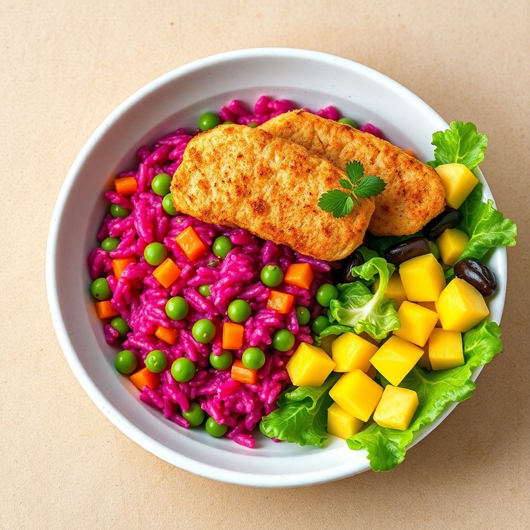 Bowl Mediterráneo de Arroz, Pollo y Ensalada con Fresas y Arroz Suelto