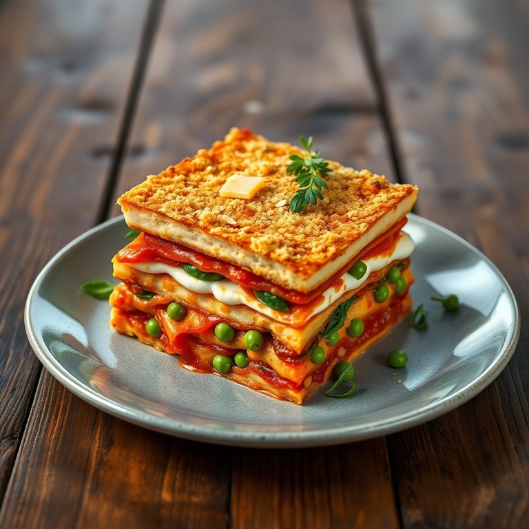 Lasaña de Tofu con Salsa de Tomate al Yogur Griego y Canónigos