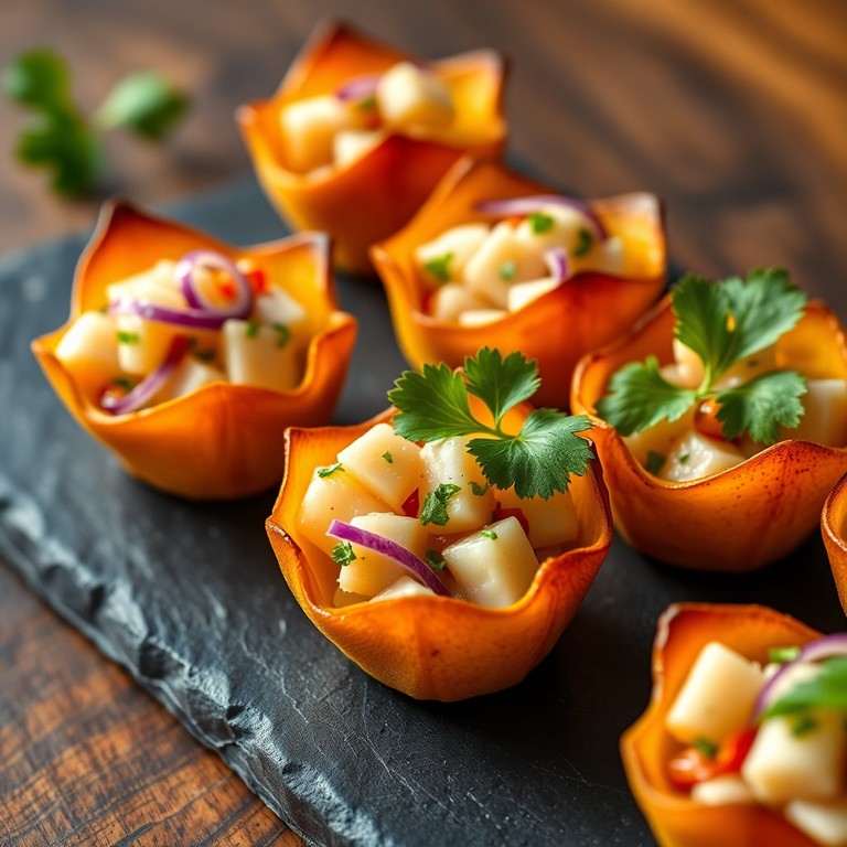 Canastitas de Plátano Maduro Rellenas de Ceviche de Pescado