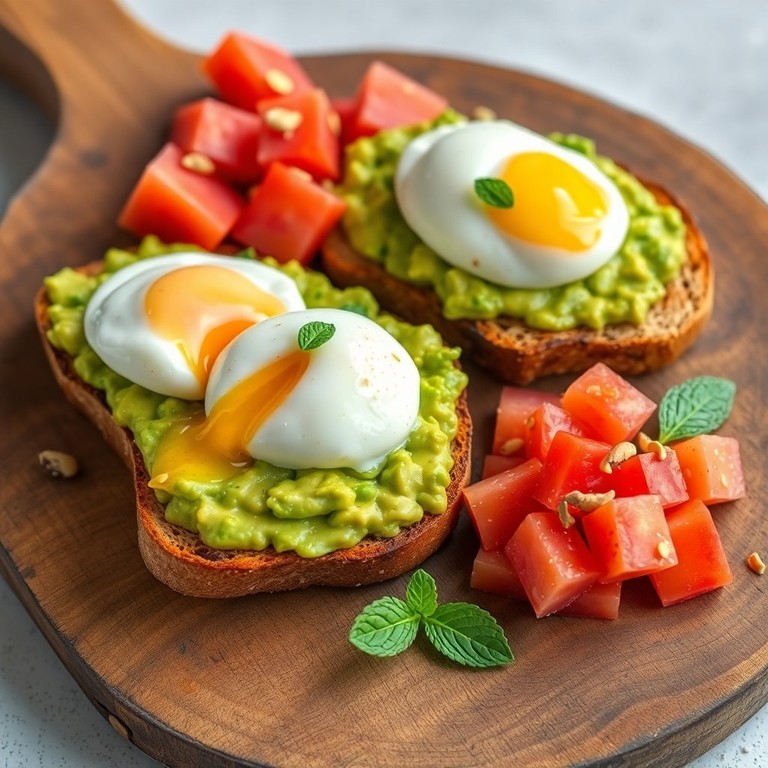 Tostada de Aguacate con Huevo Escalfado y Sandía Fresca