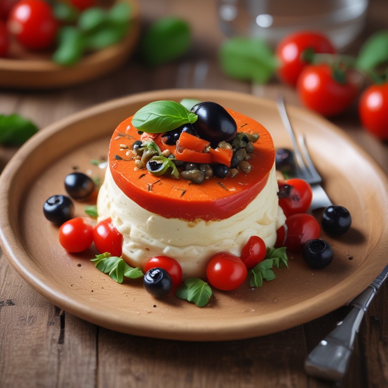 Timbal de Jitomate y Queso de Cabra con Salsa de Albahaca