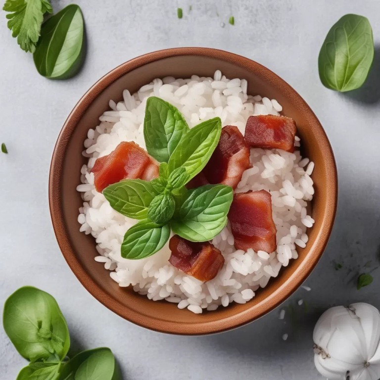 Arroz Blanco con Ensalada Fresca de berenjena y Panceta