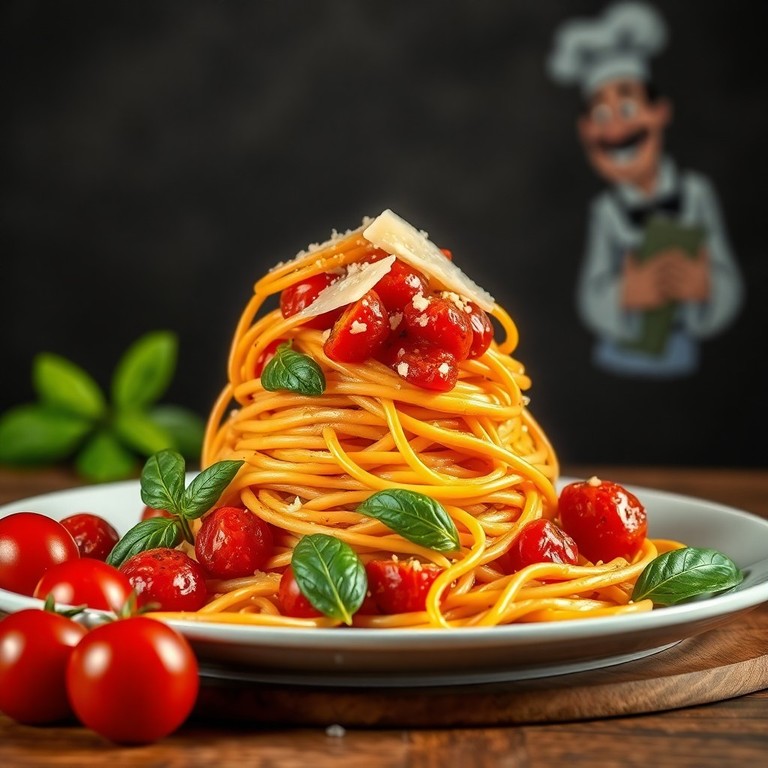 Spaghetti al Pomodoro Confit avec une Touche d'Humour