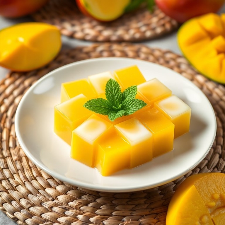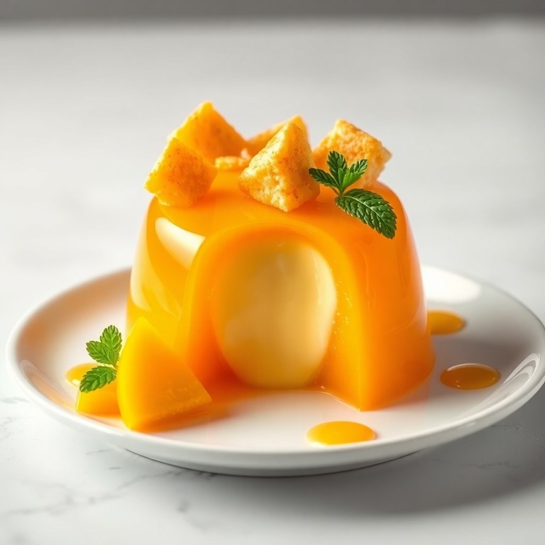 Gelatina de Mango con Relleno de Flan y Crocante de Profiteroles