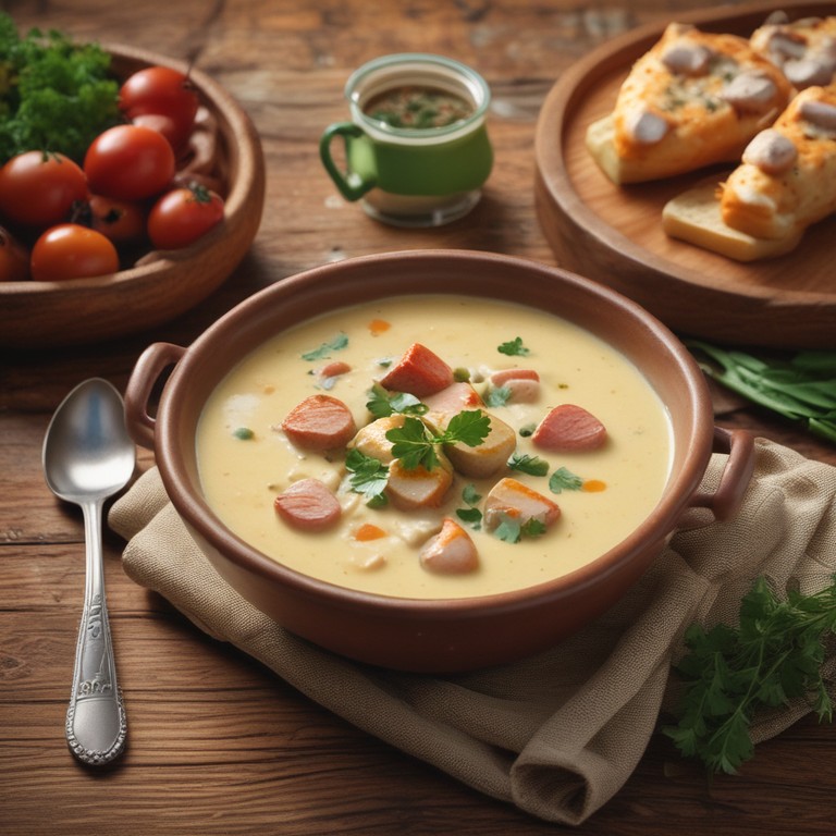 Sopa Cremosa de Pollo y Salchichas con Fideos