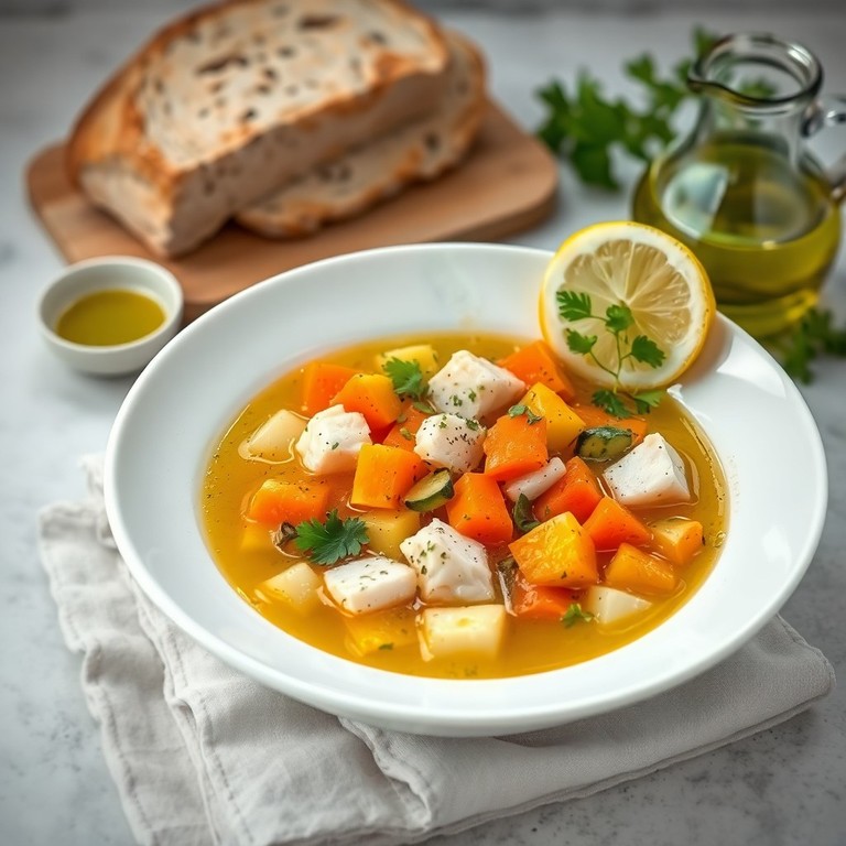 Sopa de Verduras y Pescado al Estilo Mediterráneo