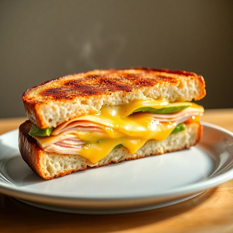 - Sándwich Grillé de Masa Madre con Pavo, Queso y Aguacate