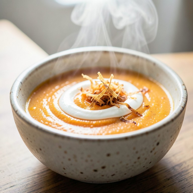 Crema de Calabaza y Zanahoria con Crujiente de Repollo