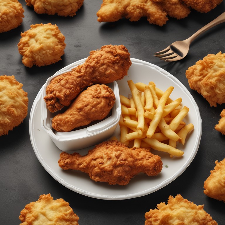 Pollo Frito con Harina y Papas Fritas