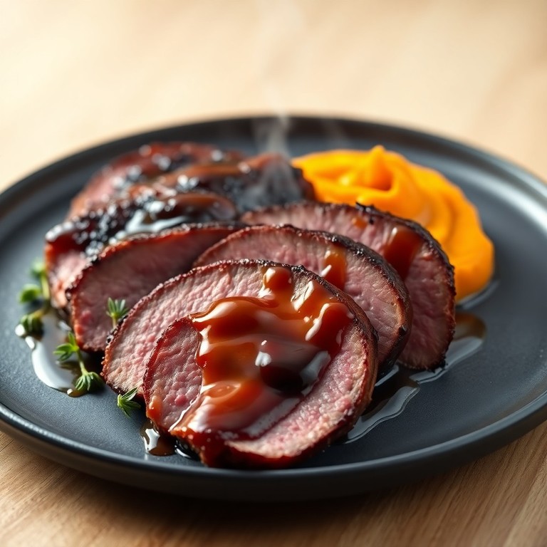 Magret de Canard Rôti Laqué au Miel et Balsamique, Purée de Patates Douces