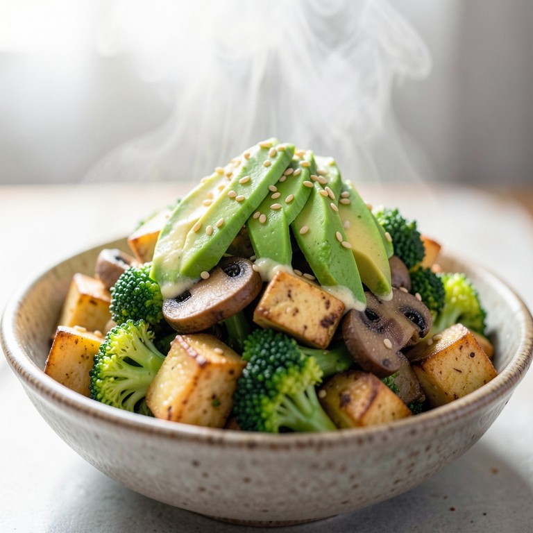 Salteado Vegano de Tofu con Verduras y Aguacate Cremoso