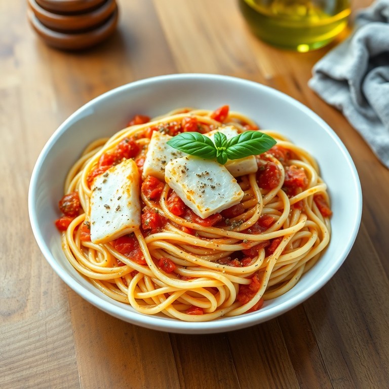 Spaghetti au Cabillaud, Ail et Tomate à la Méditerranéenne