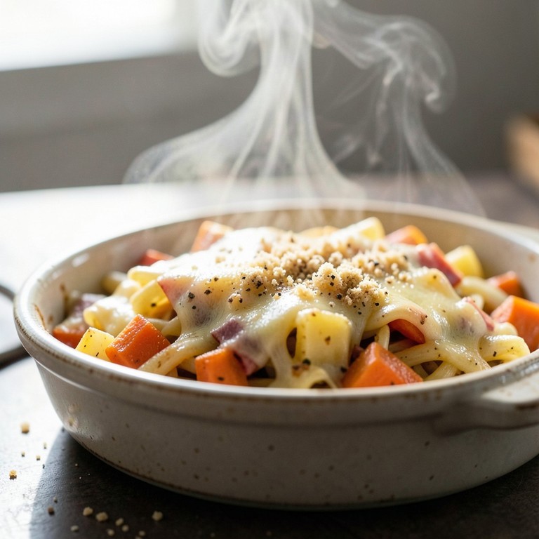 Fideos Gratinados con Verduras y Jamón