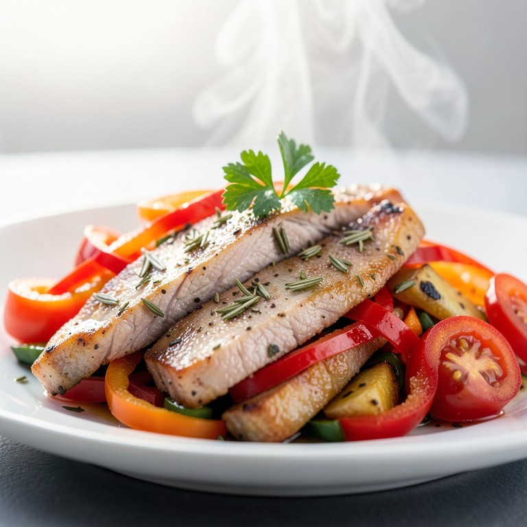 Lomo de Cerdo Salteado con Verduras Mediterráneas