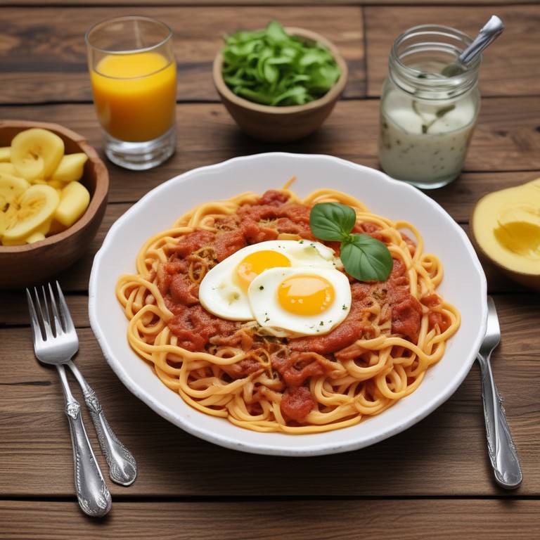 Espaguetis Cremosos con Huevo y Salsa de Tomate