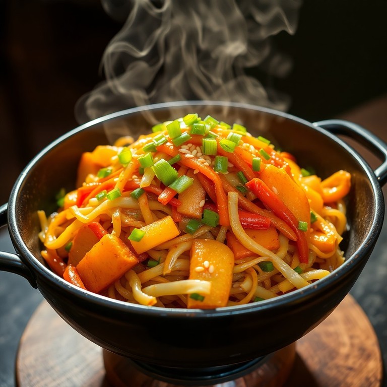 Salteado Asiático de Fideos, Huevo y Papas